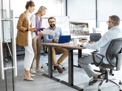 Podesivi stolovi su srce ergonomskog radnog okruženja. Oni omogućuju izmjenu između sjedenja i stajanja – jednostavna, ali učinkovita metoda za smanjenje negativnih učinaka dugotrajnog sjedenja. Tako možete redovno mijenjati radni položaj, spriječiti bolove u leđima, potaknuti cirkulaciju, rasteretiti mišiće i kičmu te povećati produktivnost – sve nezavisno od visine tijela. U našem web katalogu pronaći ćete dva nova okvira za stolove, Amica i Evo, koji postavljaju standarde u ergonomiji, kvaliteti i sigurnosti. Oduševljavaju svojom električnim prilagođavanjem visine impresivnom brzinom (Amica: 70 mm/s, Evo: 60 mm/s) i tihim radom (Amica: 39 dB, Evo: 42 dB). Upravljanje se vrši intuitivno preko upravljačkih jedinica s opcionalnom memorijskom funkcijom za pohranu željenih visina. Još jedna istaknuta karakteristika: Montaža je veoma brza i prema navodima proizvođača može biti gotova u samo četiri minute – savršeno za moderan, ergonomski rad.