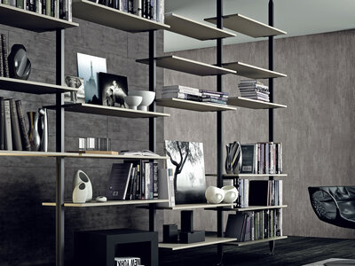 U stambenom kontekstu regalni sistem „Stili“ od poda do stropa može se koristiti u prostoru za spavanje kao garderobni ormar, u dnevnom boravku kao ugrađeni zid / biblioteka ili kao pregrada sobe između dva različita prostora. Opcioni srednji profil koristi se kao veza između zida i vertikalnog strukturnog profila što cijeloj strukturi daje veću krutost i čvrstoću.
