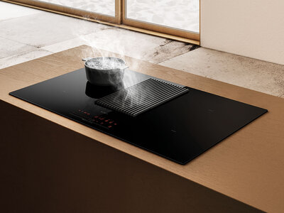 U donjem dijelu ploče za kuhanje nalazi se površina sa komandama koja omogućuje kontrolu nad indukcijskim područjima za kuhanje i ekstrakciju jednostavnim dodirom prsta, dok u stanju čekanja Standby postaje potpuno nevidljiva.