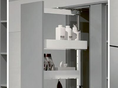 Polica za odlaganje VS Larder Flex Tray u dvije visine, H0 i H2, služi kao obostrano upotrebljiva polica i dizajnirana je za integraciju VS ADD® Box. Kutije se savršeno uklapaju i sa stražnjom konturom stvaraju jedinstvenu cjelinu. Magnetni razdjelnik VS ADD® Separator može se koristiti za dodatne podjele u dubini. Materijal, proporcije i površina savršeno su usklađeni.