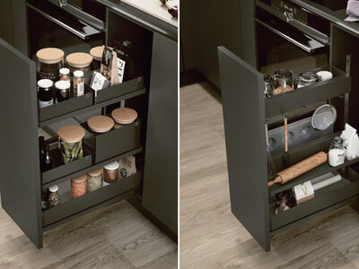 S fleksibilnim modularnim rješenjem VS Larder Flex, Vauth-Sagel unosi red u unutrašnjost ormara. Pojedinačni umetci mogu se kombinirati u individualne tematske setove i pretvoriti izvlaku za donje elemente VS SUB® Larder u savršeno prilagođeno rješenje za pohranu. I u kuhinji i u praonici, VS Larder Flex omogućuje rješenja po mjeri za uobičajene potrebe za pohranom oko štednjaka, pećnice, sudopera ili perilice rublja. Svi VS Larder Flex umetci također odgovaraju visokoj izvlačnoj koloni VS TAL® Larder.