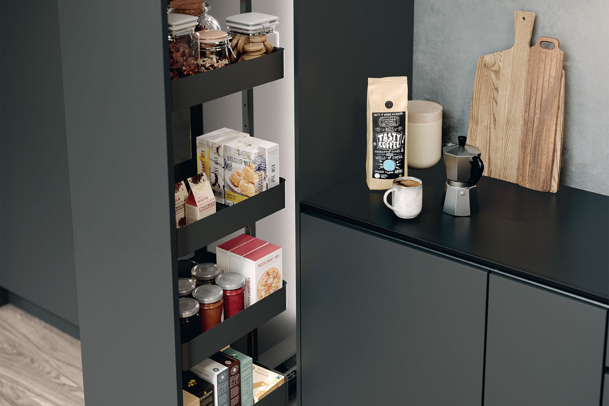 Svaka kuhinja treba elegantan dizajn. Vauth Sagel u svom asortimanu već dugo vremena nudi svojevrsni klasik - VS TAL Larder visoku izvlačnu kolonu. Fronta ormarića se otvara i zatvara lagano i tiho za