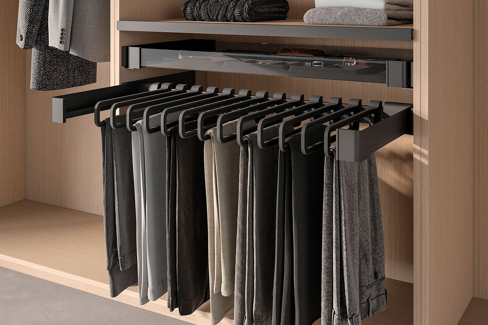 Okov je više od samo funkcionalnog dijela namještaja – on jednako doprinosti ukupnom dojmu. Firma Blum se pobrinula da onyx crne spojnice ne oduševljavaju samo svojom funkcionalnošću, nego i izgledom